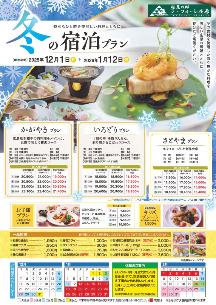 冬のご宿泊プランのパンフレットをアップロードしました。